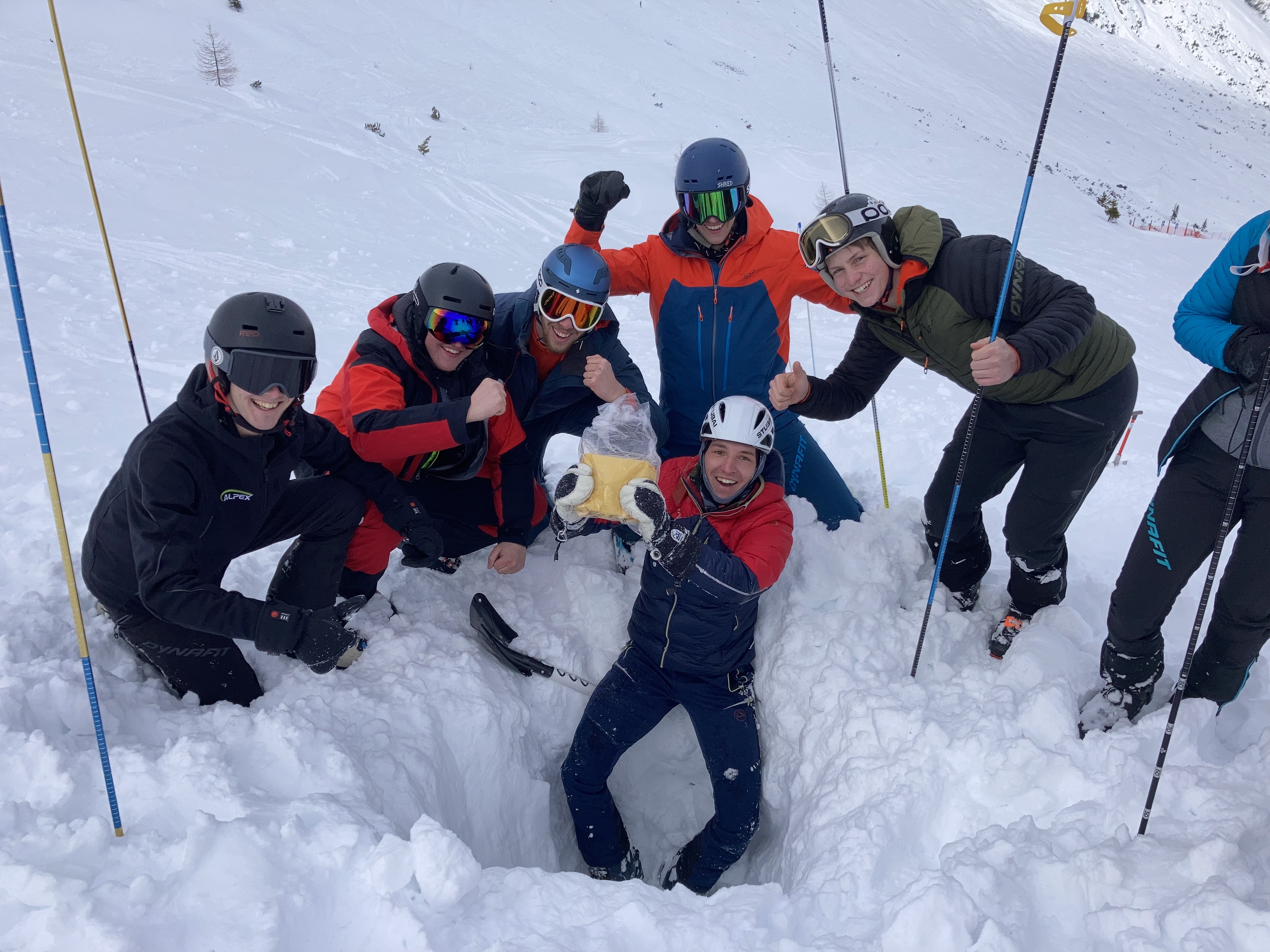 Vergrabenes LVS-Gerät mit Lawinensuchgerät und Sonden gefunden