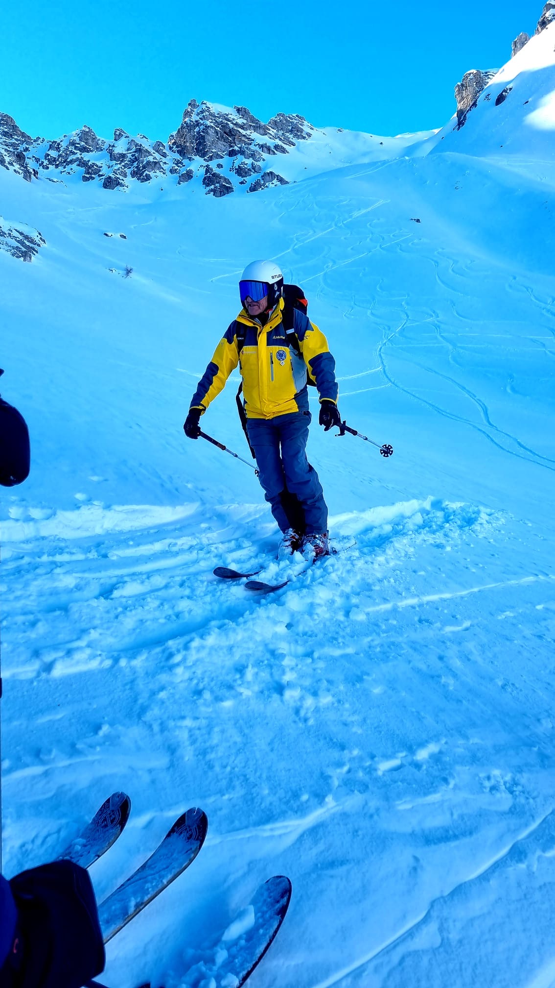 - Erklärung und Schulung für die richtige Abfahrtstechnik auch für nicht so sichere Fahrer bei Abfahrten im freien Gelände je nach Schneeart und Steilheit