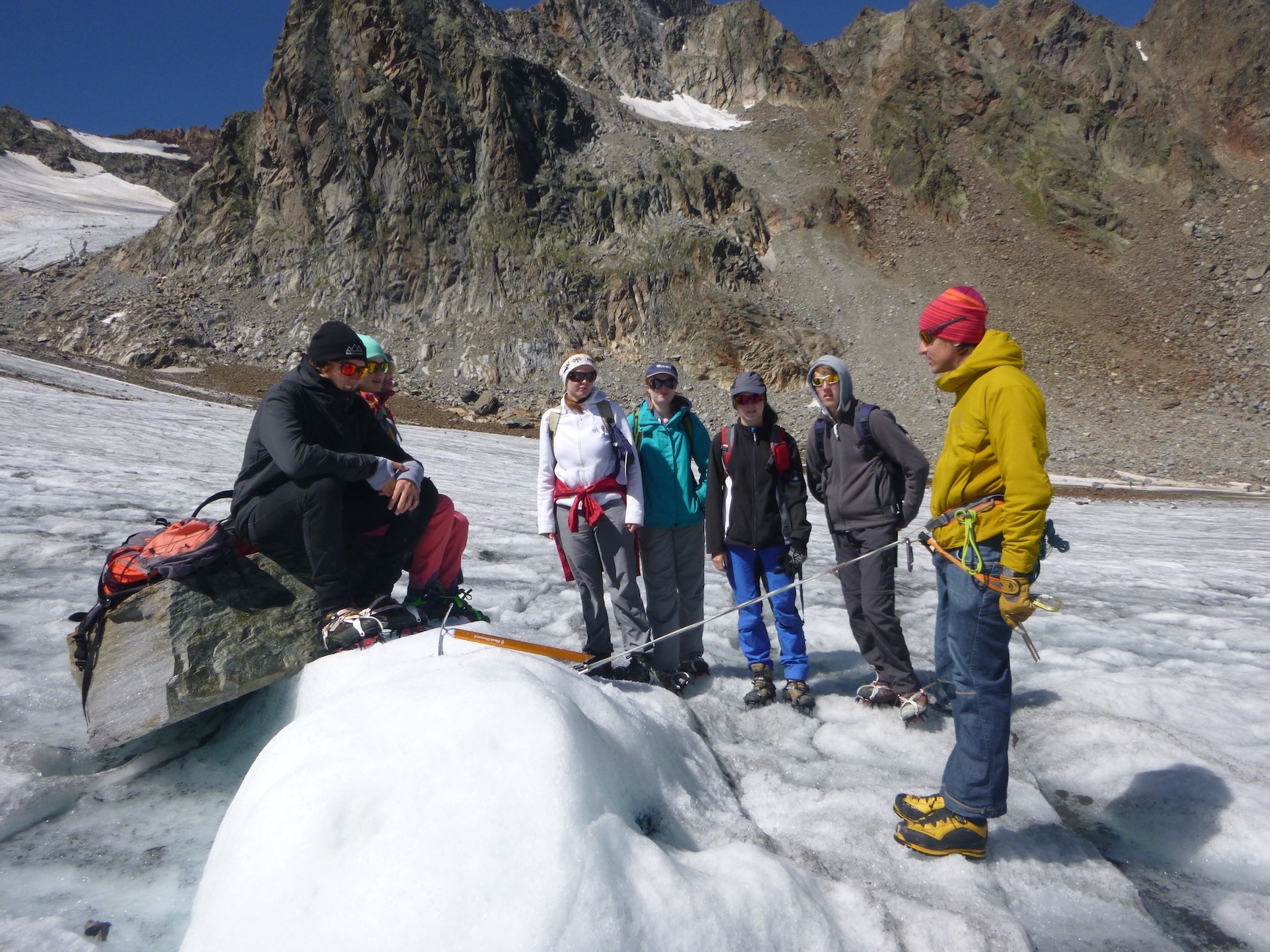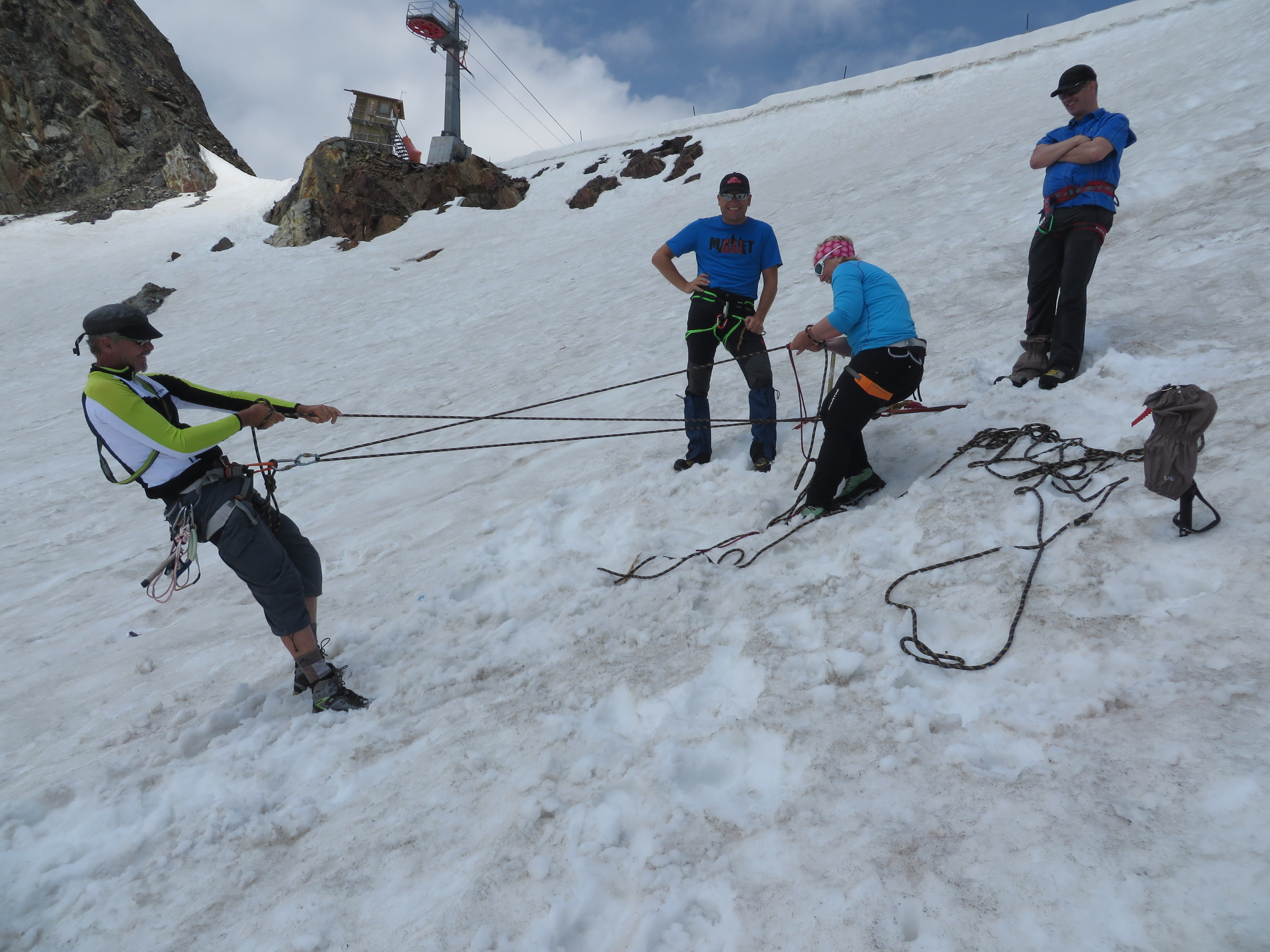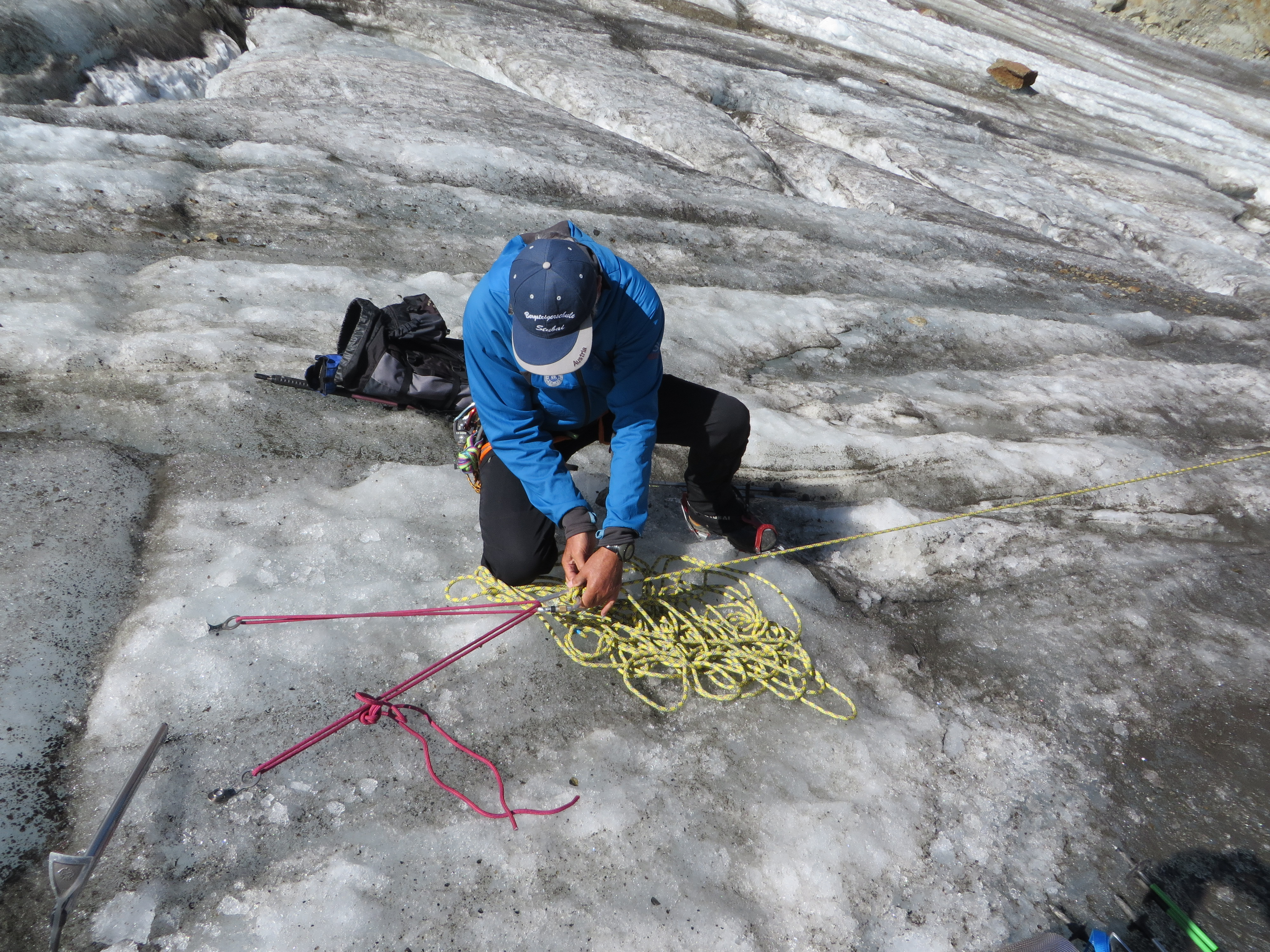 am Gletscher, eine überaus wichtige Ausbildung, bevor man sich selbstständig auf Gletschern aufhält!