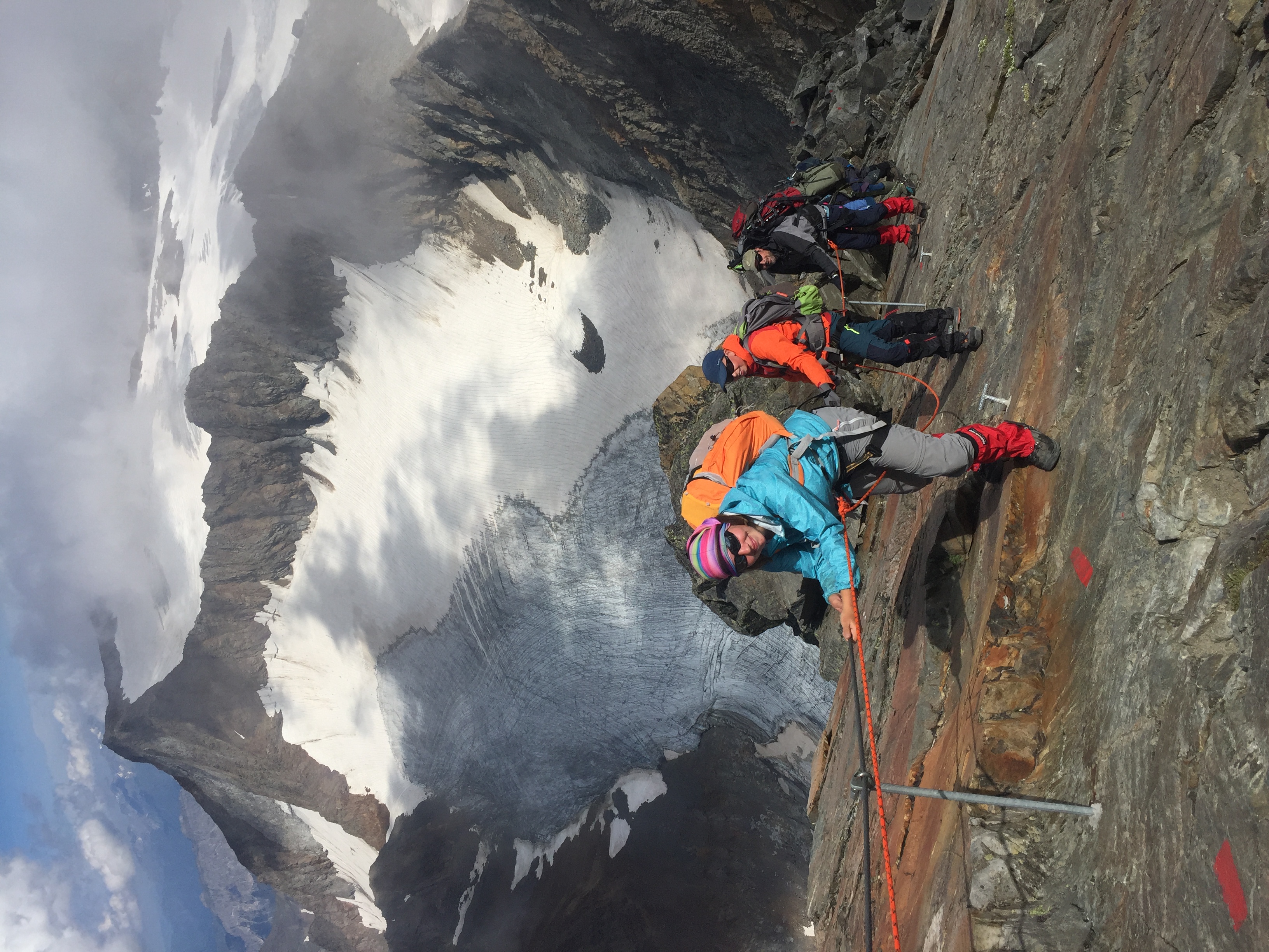 Ausrüstung: Sportklettersitzgurt, 1 Schraubkarabiner, Steigeisen, Teleskopstöcke, wasserdichte und knöchelhohe Bergschuhe, Gamaschen, Trinkflasche, Sonnenbrille, Hüttenschlafsack ist verpflichtend (Schlechtwetterausrüstung wie Anorak, Handschuhe, Mütze)